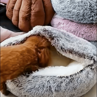 De CuddleCave creëert precies dat: een warme, zachte cocon waarin jouw kat of kleine hond volledig tot rust komt.